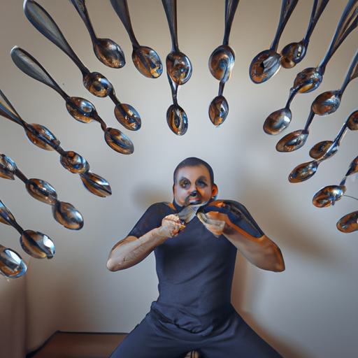 The man’s technique for balancing the spoons is a closely guarded secret, but onlookers have reported that it involves a combination of breath control, Zen-like concentration, and some sort of sticky substance applied to his skin.