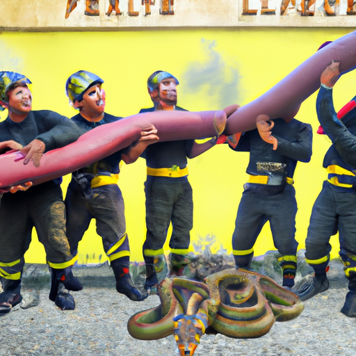 Fortunately for the snake, the quick-thinking firefighters arrived on the scene armed with nothing but their bare hands and decades of training in handling creatures of all shapes and sizes. Without hesitation, they sprang into action and, using a combination of brute force and expert technique, managed to wrestle the python free from its tangled prison.