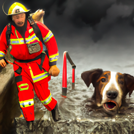 “Heroic Firefighters Save Dumb Dog from Self-Inflicted Storm Drain Fiasco” In a stunning display of bravery and selflessness, firefighters in England saved a hapless pooch named Bramble from his own stupidity