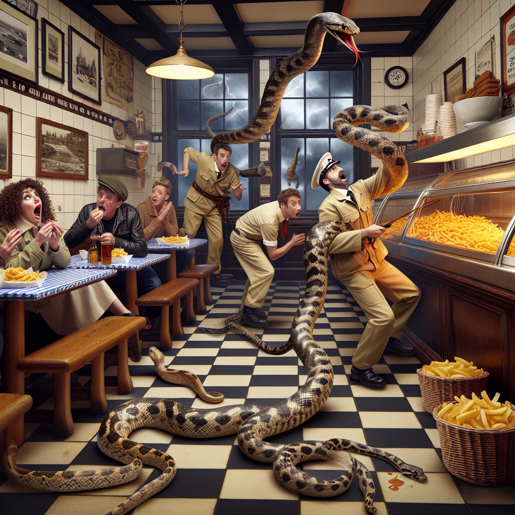 In a daring rescue operation that has left the nation gasping, a team of fearless animal wranglers was hastily summoned to a bustling fish and chip shop in the heart of London after reports of a slithery serpent on the loose.