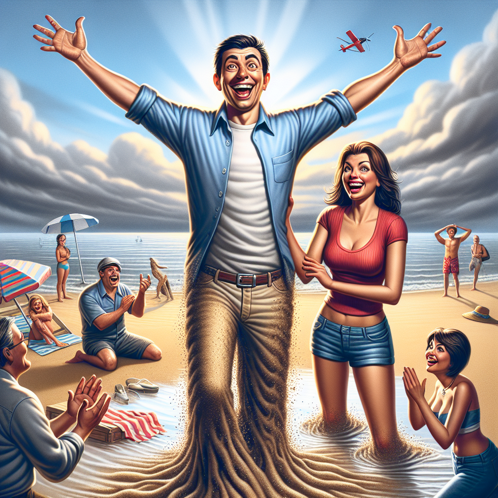 MIRACLE ON THE SHORE: Local Man Stuck in “Quicksand” for Hours, Emerges with New Girlfriend and a Lifetime Supply of Bragging Rights MIAMI TOWNSHIP, MI – In a bizarre incident that has left beachgoers and rescue teams alike scratching their heads, 32-year-old Chad Wilson found himself stuck up to his waist in what he described as “quicksand” on Lake Michigan’s scenic shoreline