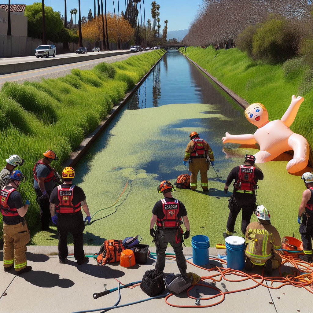 BREAKING: “Mystery of the Stuck Person” Solved: Inflatable Imposter Fools Rescue Teams in California In a bizarre incident that has left authorities and residents of Bakersfield, California, scratching their heads, a “person” reported stuck in a canal has been identified as a blow-up doll