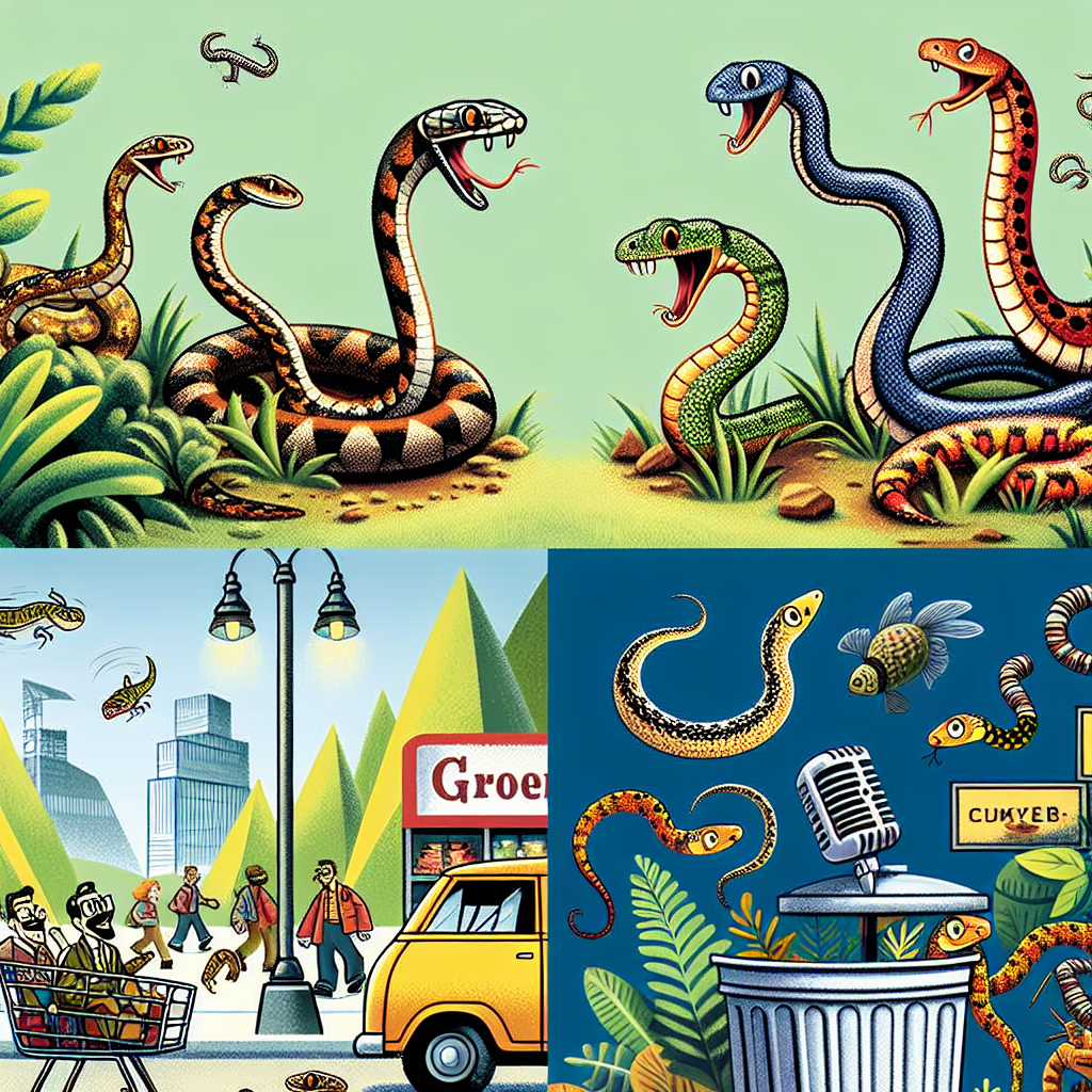 BREAKING: SNAKE APOCALYPSE UNLEASHED AS REPTILES EMERGE FROM DENS IN SEARCH OF FOOD, MATES, AND MAYHEM In a bizarre and alarming turn of events, reports are flooding in of snakes slithering out of their dens in droves, leaving a trail of chaos and destruction in their wake