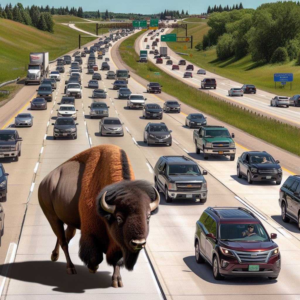 BREAKING: BISON ON THE LOOSE! WISCONSIN HIGHWAY DESCENDS INTO PANDEMONIUM MADISON, WI – In a bizarre incident that has left residents of Wisconsin scratching their heads, a rogue bison was spotted roaming freely on a busy highway in the heart of the state