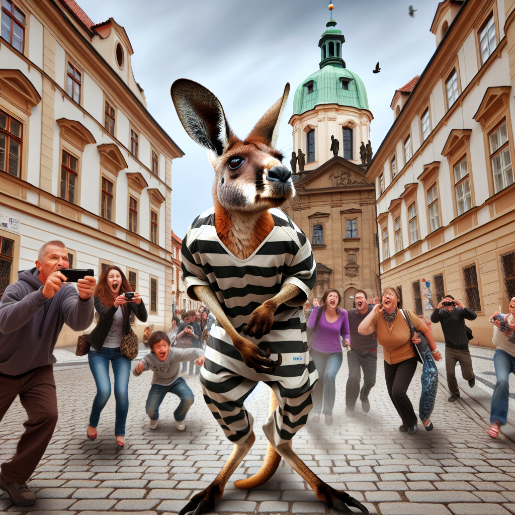 BREAKING: ROO-GATE ROCKS CZECH REPUBLIC AS FEARSOME KANGAROO GOES ROGUE In a shocking turn of events, a kangaroo named “Kiki” has hopped its way to freedom from a maximum-security prison in the Czech Republic, leaving a trail of chaos and bewildered onlookers in its wake