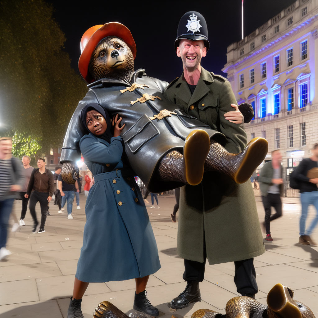 BREAKING: British Bunglers Break Beloved Bear, Nation Left in Stitches In a shocking display of drunken ineptitude, two British service members have confessed to committing a heinous crime that has left the nation in stitches: breaking and stealing half of a cherished Paddington Bear statue