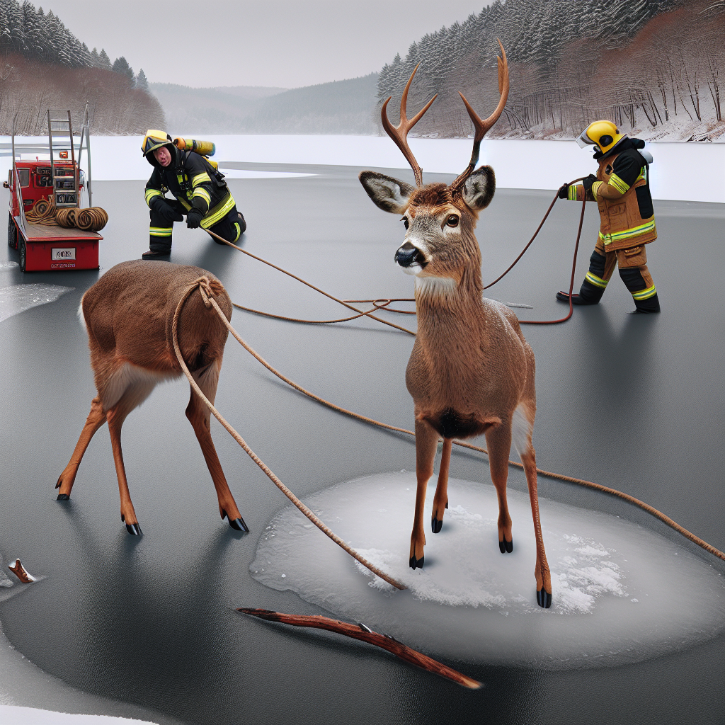 DEER’S DAREDEVIL STUNT: Local Hero Emerges as Frozen Reservoir Rescue Mission Defies All Odds! In a jaw-dropping, heart-stopping, and downright unbelievable turn of events, a drama-filled rescue mission was undertaken yesterday evening when a daring deer named “Bucky” took an unplanned swim in the frozen reservoir of Doom