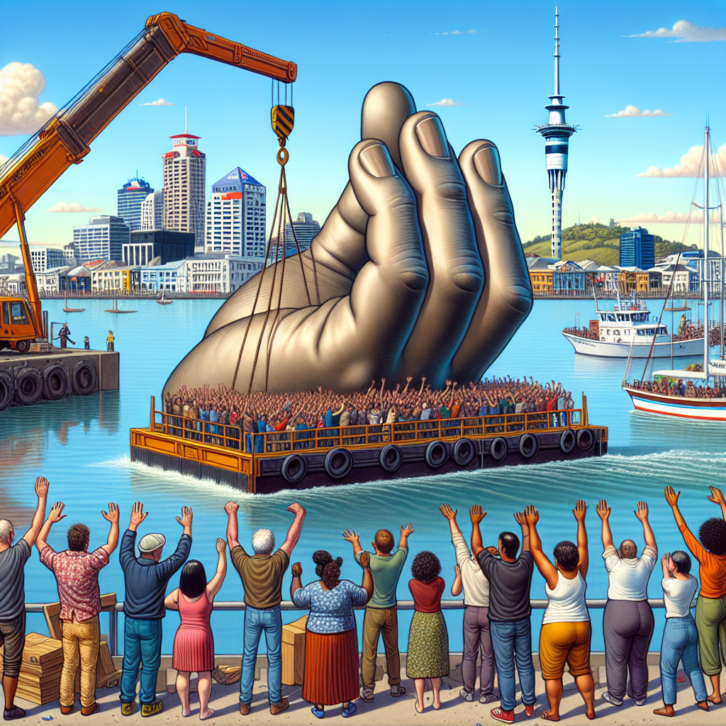 Auckland, New Zealand – In a move that has sent shockwaves of joy throughout the city, the infamous “Hand of Despair” sculpture has been permanently relocated to a remote desert island, bringing an end to its reign of terror.