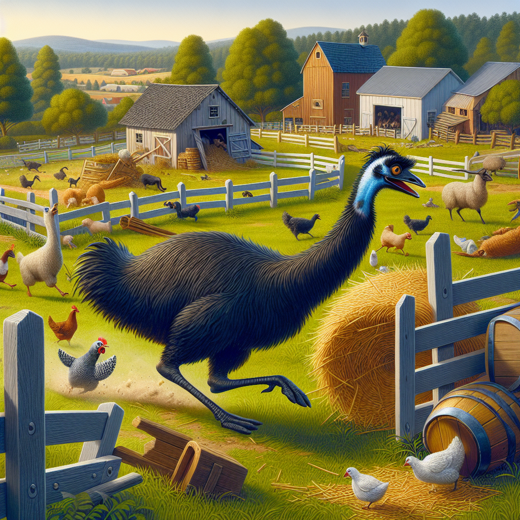 According to eyewitnesses, a rogue emu named “Eddie” (or so we’ve been told) has been wreaking havoc on the countryside, leaving a trail of bemused villagers, overturned market stalls, and one very battered garden gnome in its wake.