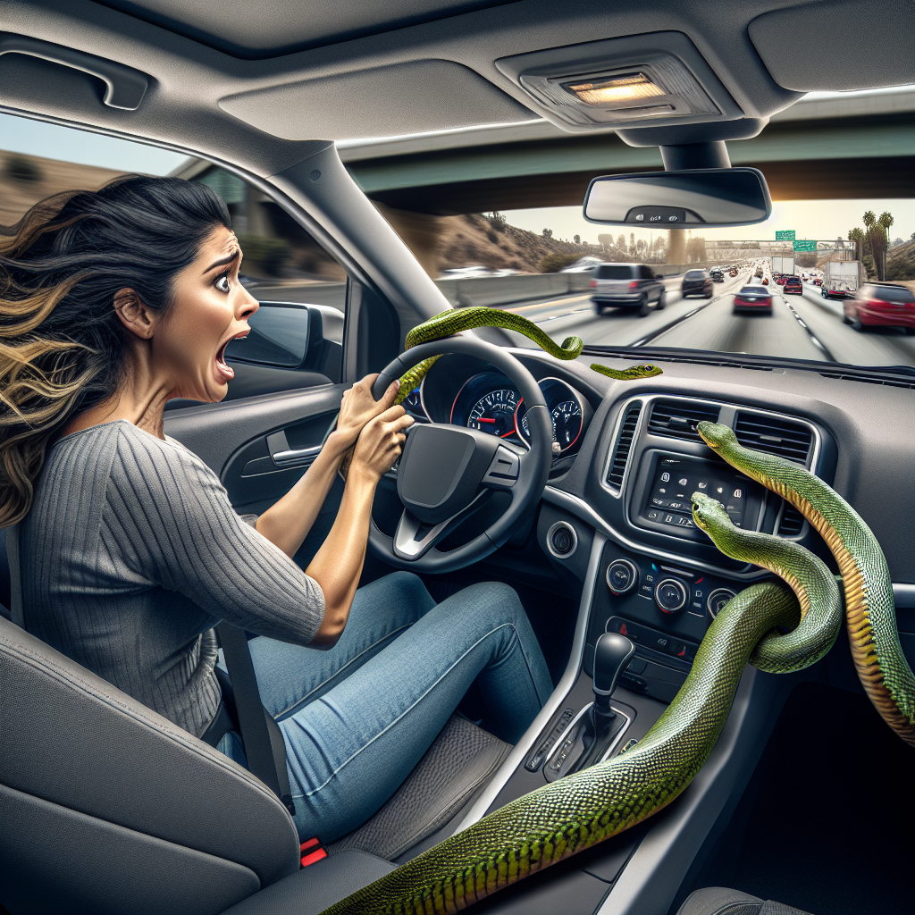 ### Freeway Extravaganza: Woman’s Unplanned Encounter with a Slithery Passenger