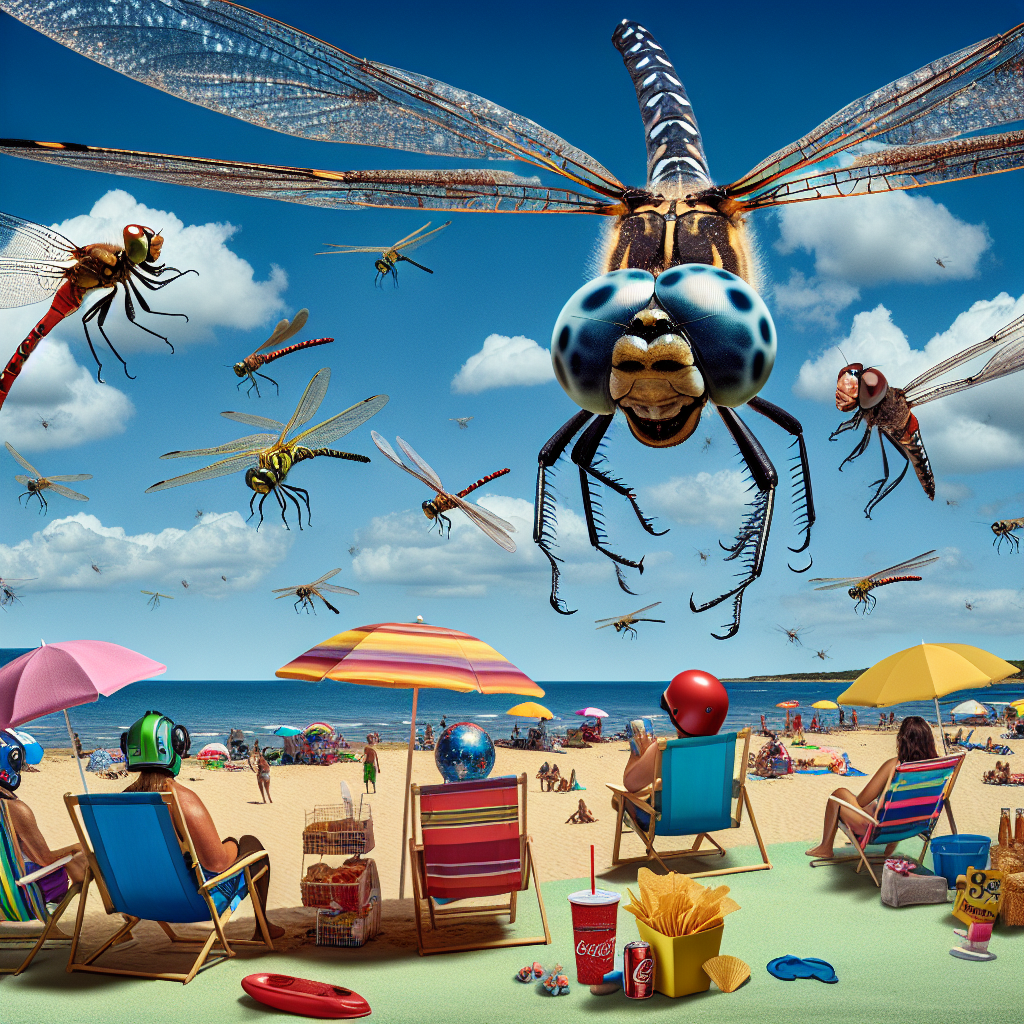 BREAKING: Dragonfly Apocalypse Hits Rhode Island, Residents Advised to Wear Helmets and Carry Snacks PROVIDENCE, RI – In a bizarre and terrifying turn of events, a swarm of gargantuan dragonflies descended upon Scarborough State Beach in Rhode Island, leaving a trail of bewildered beachgoers and destroyed beach umbrellas in their wake