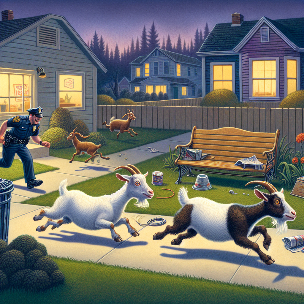 In a bizarre incident that has left residents of north Wheat Ridge in stitches, a pair of mischievous goats broke free from their owner’s property and led police on a wild hoof chase through the neighborhood yesterday evening.