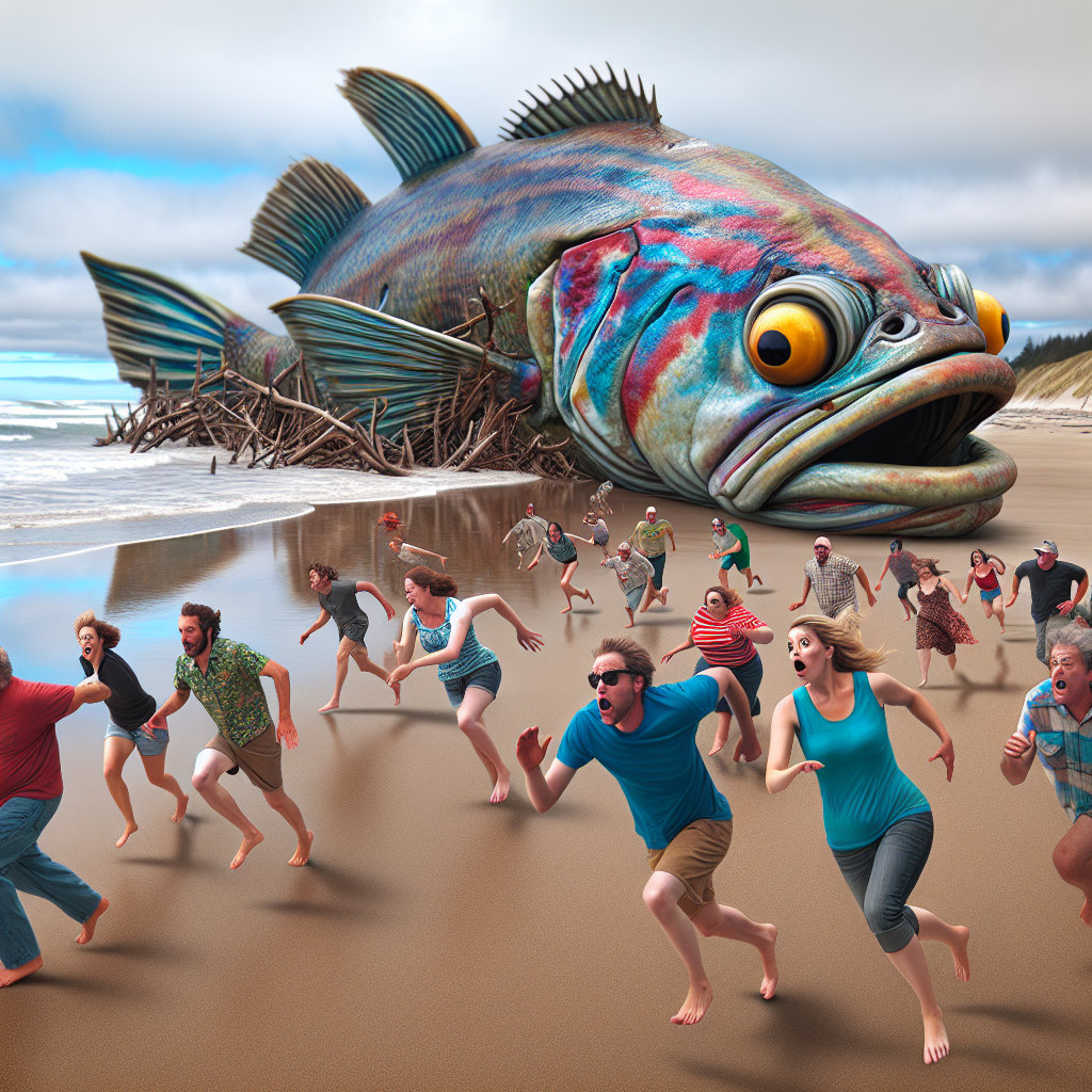 In a bizarre incident that has left scientists baffled and beachgoers bewildered, a gargantuan fish described as “the stuff of nightmares” washed up on a beach in Oregon yesterday. The creature, which measured a whopping 20 feet in length and 5 feet in width, was said to resemble something straight out of a science fiction horror movie.