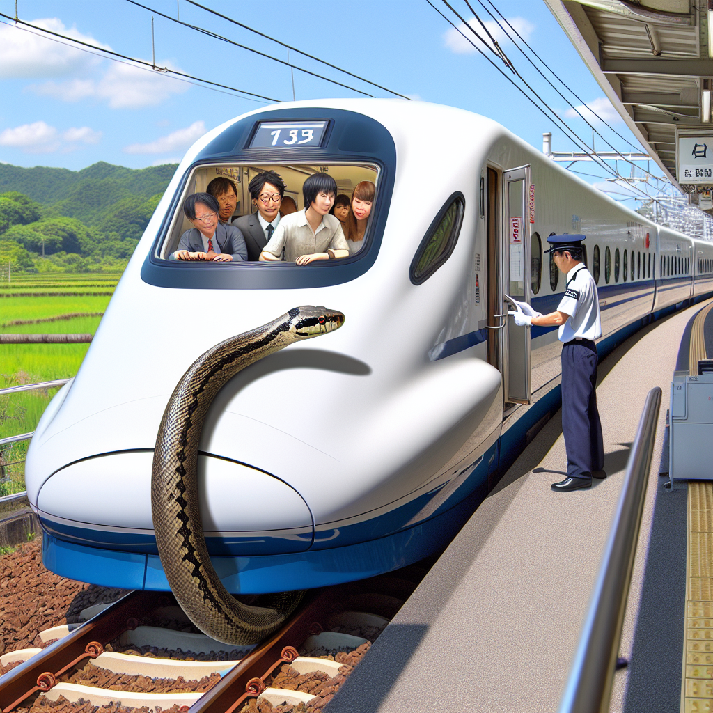 BREAKING: SNAKE-GATE ROCKS JAPAN’S RAIL NETWORK AS BULLET TRAIN GRINDS TO A HALT Tokyo, Japan – In a shocking turn of events, one of Japan’s notoriously punctual bullet trains, the Shinkansen, was brought to a screeching halt for a whopping 17 minutes yesterday evening after a slithery stowaway was discovered in a passenger car