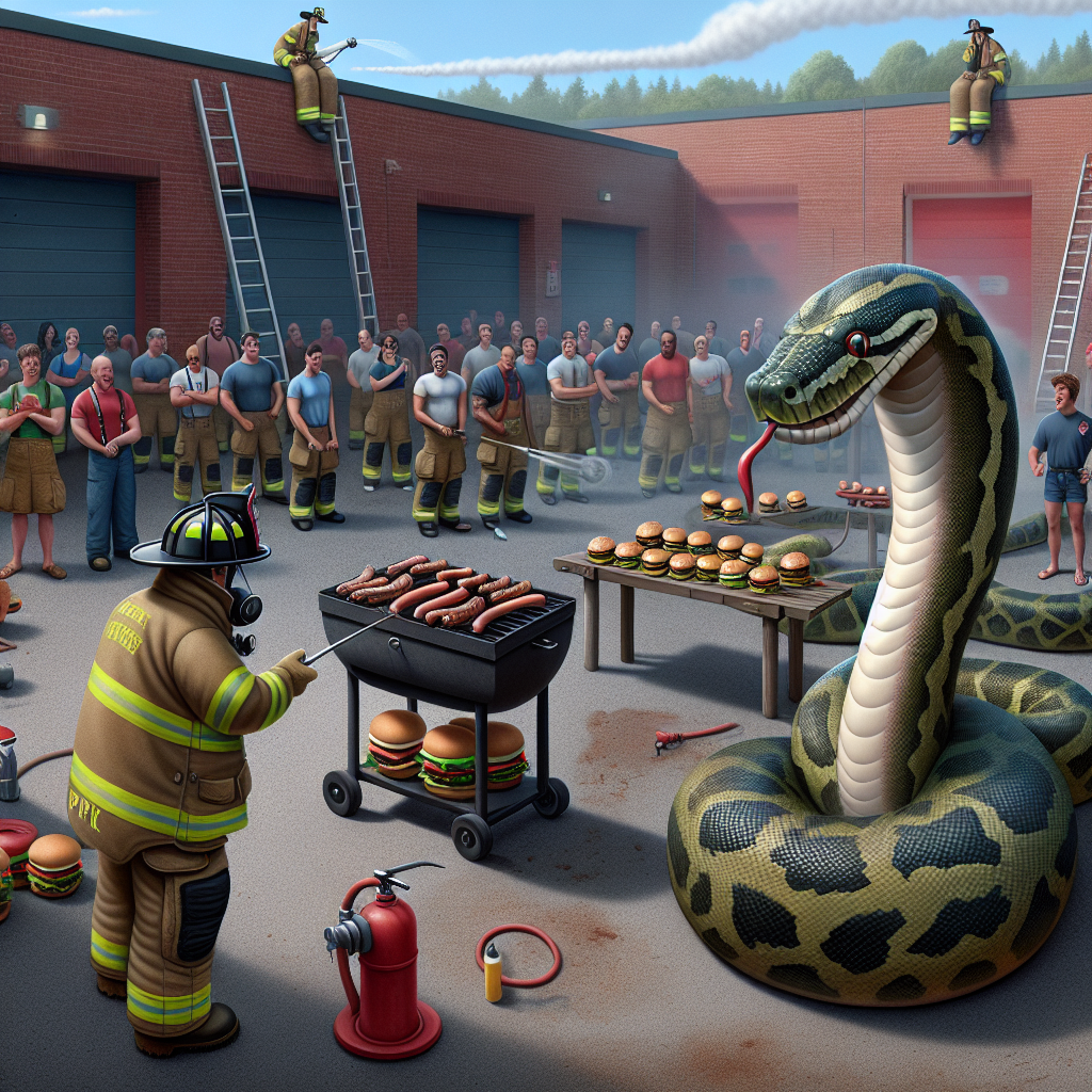 The young reptile, dubbed “Ember” by local wildlife officers, slithered its way onto the academy grounds, seemingly determined to partake in the rigorous training program synonymous with firefighting. Witnesses reported seeing the python lounging casually under a training tower. When confronted, the snake reportedly flashed a dazzling smile—assuming snakes could smile—and appeared ready to enroll in the next class of rookie firefighters. “A real fire hazard, if you ask me,” chirped one bemused firefighter. “I mean, who needs a hose when you can just intimidate the flames with pure charm?”