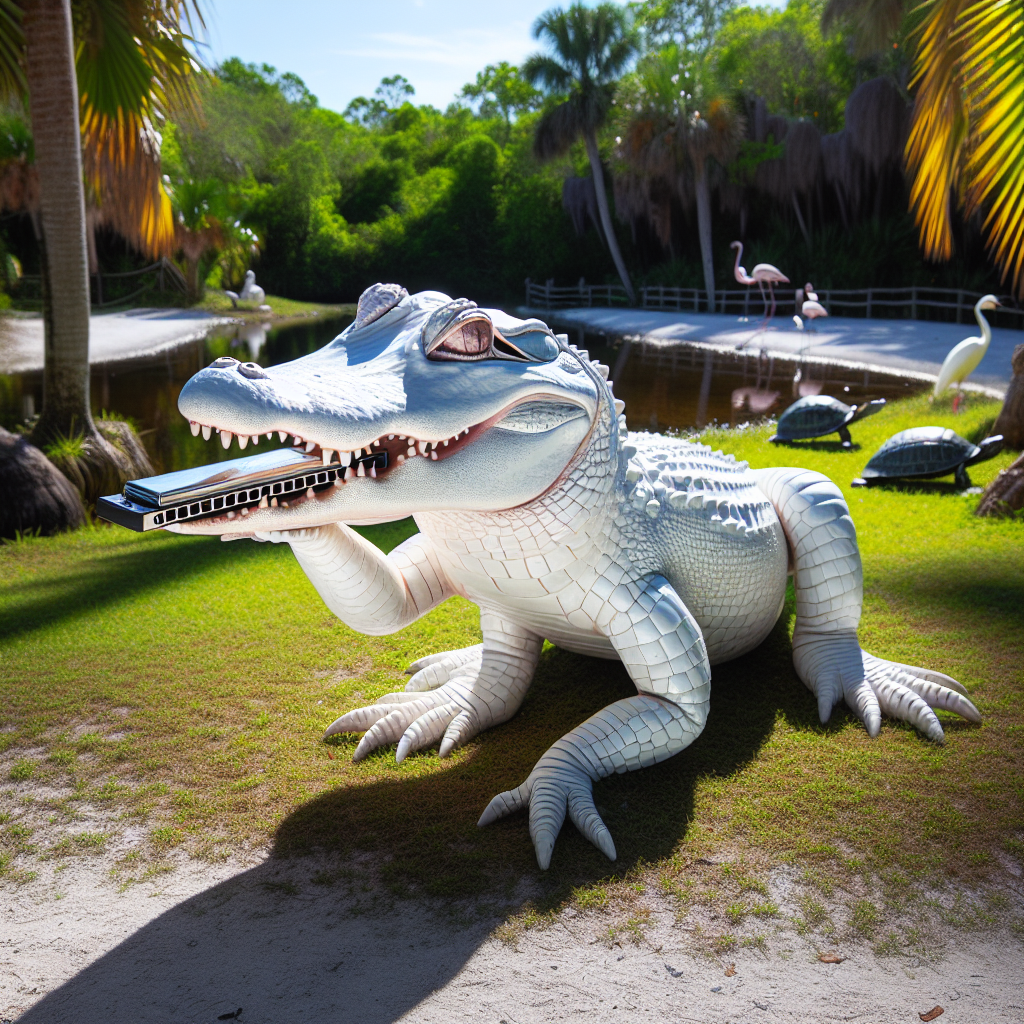 **BREAKING: Rare Albino Alligator Hatches at Florida Safari Park, Scientists Baffled by its Sudden Ability to Play the Harmonica**