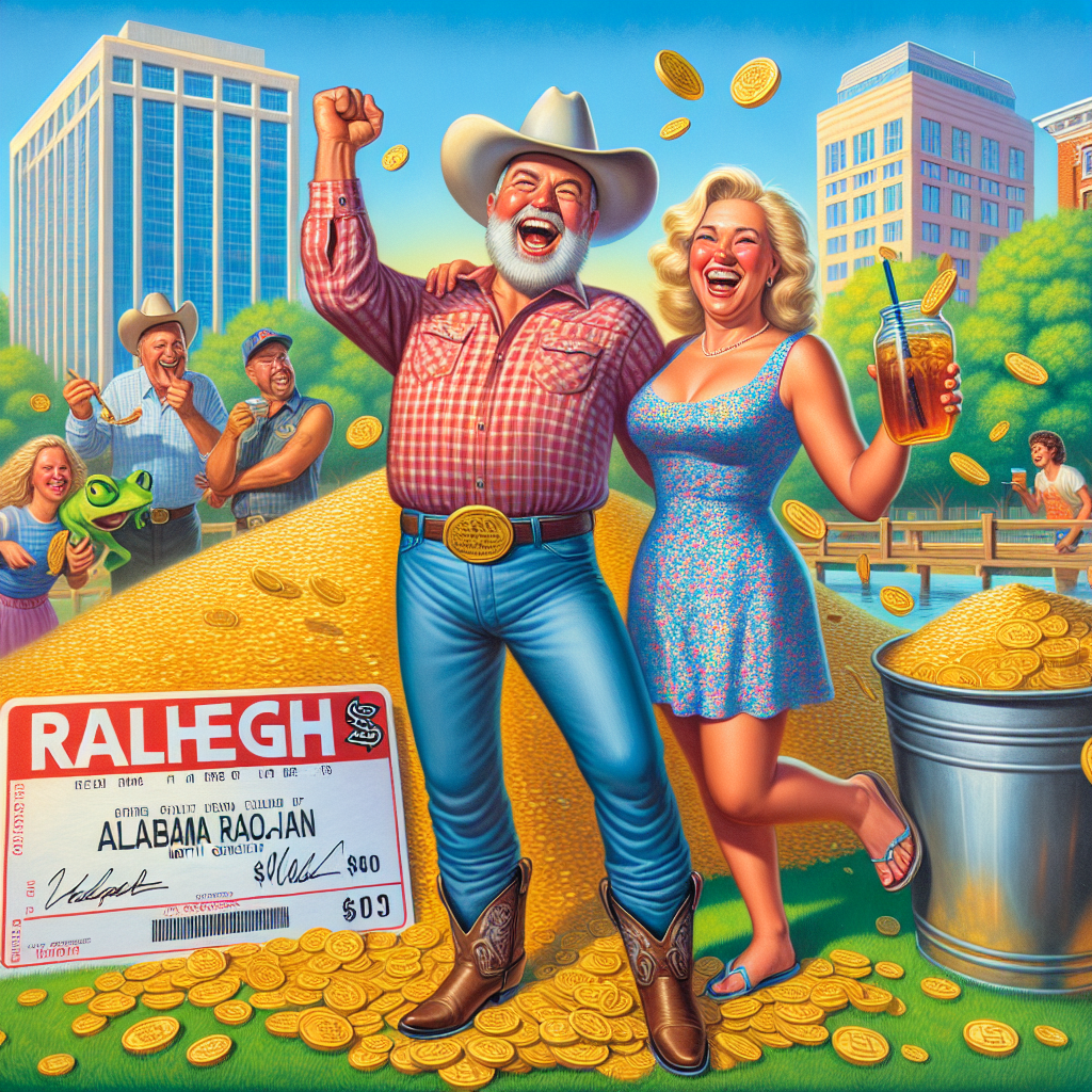 Raleigh, NC – In a stunning turn of events, a luck-crazed Alabama man, Bubba “Lucky” Jenkins, 32, has won a whopping $100,000 (or allegedly that’s what he told his wife he won) in a North Carolina lottery drawing while on a romantic getaway with his sweet tea-sippin’ sweetheart.